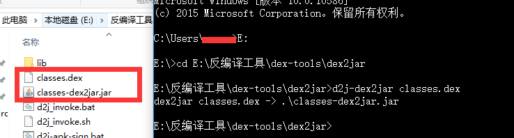 这个时候就有人问我,你那个classes.dex是怎么获得的,其实在我最开始讲述的时候说过,把apk解压下来就能获得classes.dex文件,之后赋值到dex2jar目录下 ,执行命令。