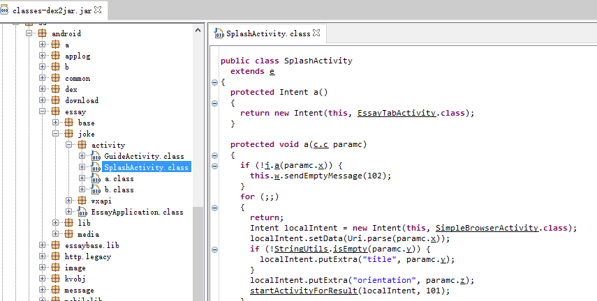 在上面说到我们通过apkTool反编译获得apk 等资源文件,如果你想获取源代码呢,怎么办,这时候就需要dex2jar登场了。