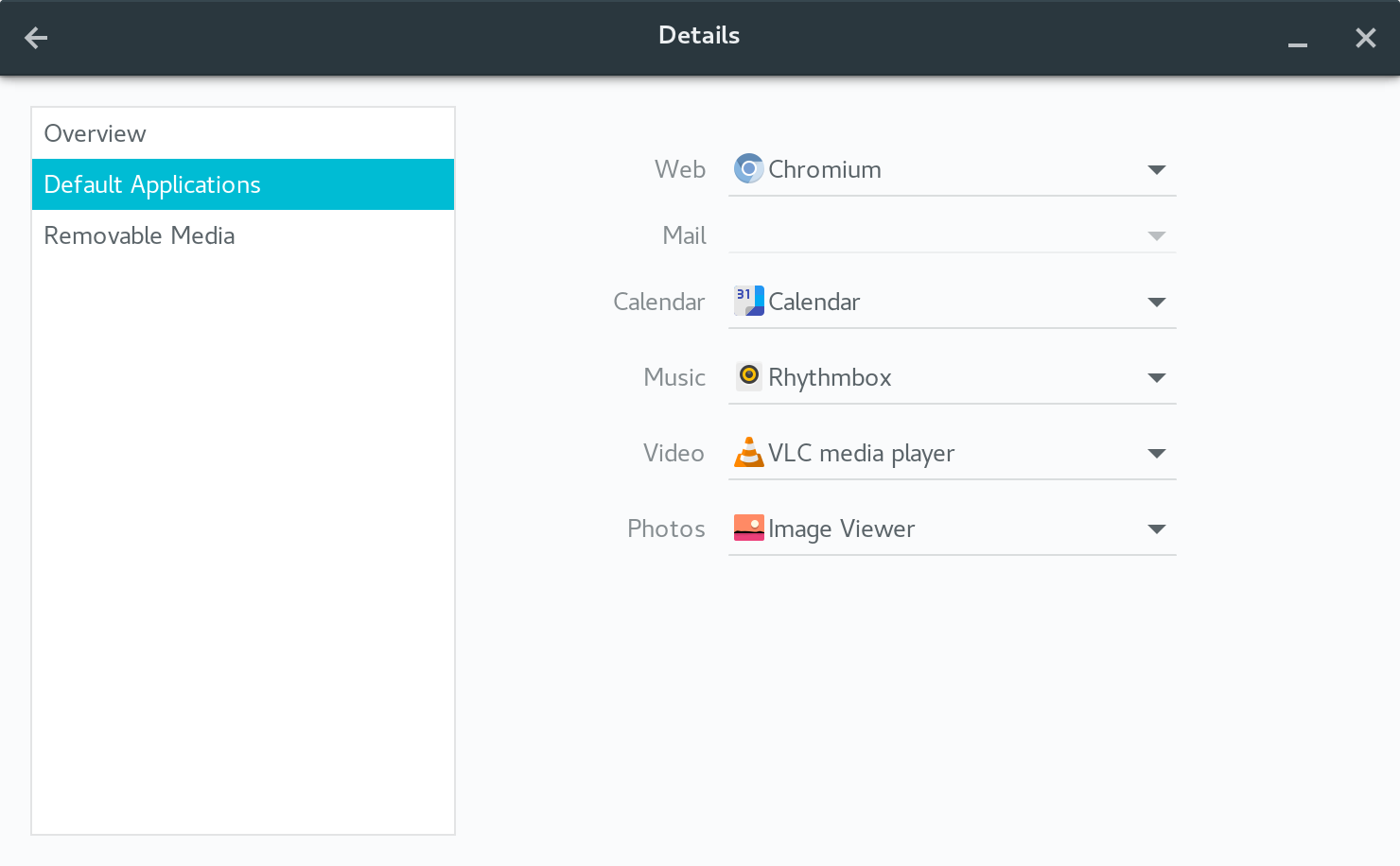 就是经常在Ubuntu等等新手入门里看见的, 在设置里, 对于Gnome来说在Settings->Details->Default Applications