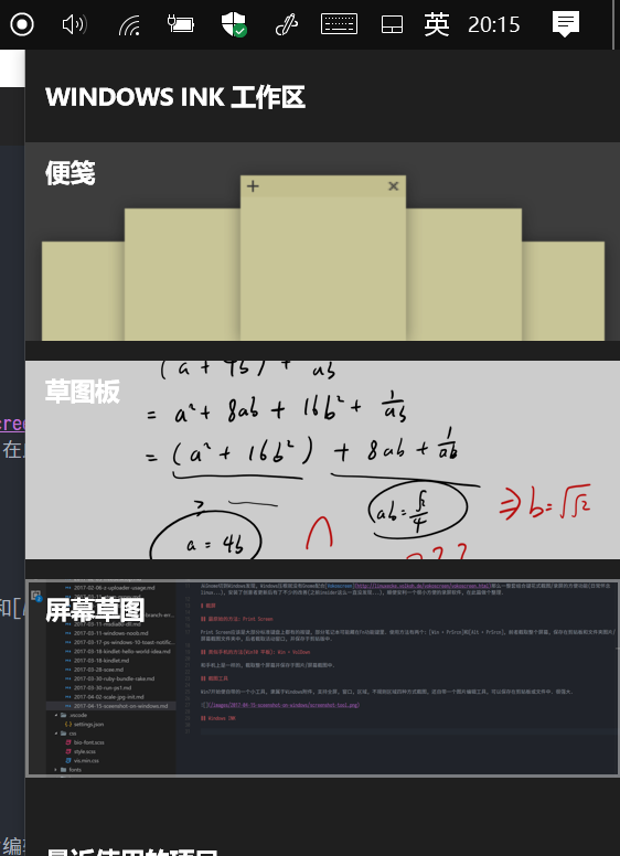 Win10周年更新中引入的一大功能, Windows INK中的屏幕草图, 能够方便地截屏并选择区域缩放, 手绘, 可以保存在剪贴板或文件中.