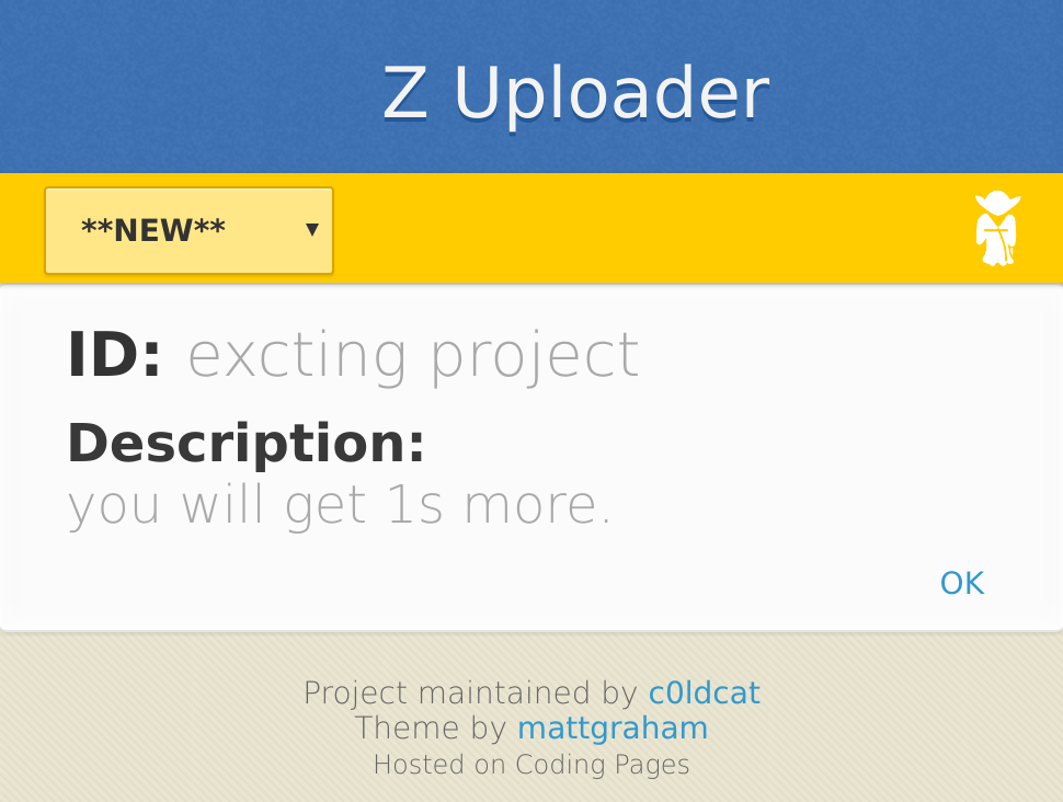 在Select框中选中NEW, 输入Task的名称和描述, 点击OK, Notify中提示Task created并且页面自动刷新后并表明创建成功.
