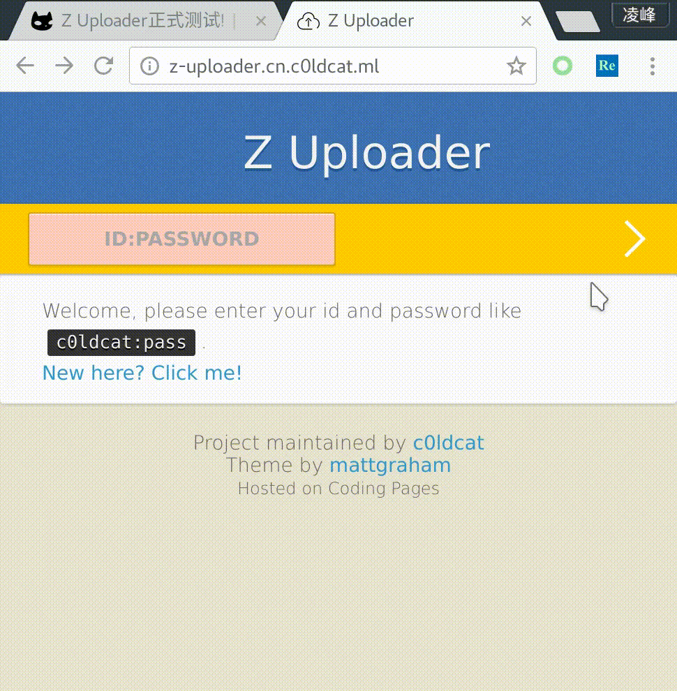 形同注册, 在初始页面输入框中输入ID:密码回车或点击右侧>按钮即可登录.